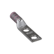 Característica: Precision-engineered compression lug manufactured from high-conductivity T2 copper, designed for 1/0 AWG cables with dual 5/16″ stud holes at 7/8″ center spacing and pink color coding