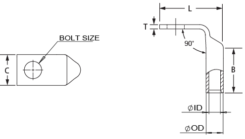 The 1-14FW right-angle grounding lug features: