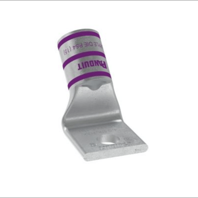 Heavy-duty 45-degree angled compression lug for 4/0 AWG cables, featuring T2 copper construction and 5/16″ stud connection for high-current applications.