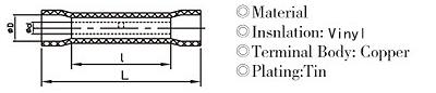 PVC insulated butt splice connector for 16-14 AWG (1.25-2mm²) wires, featuring twine reinforcement and blue color coding for secure, identifiable connections.