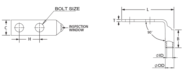 Feature : 90-degree angled design manufactured from high-conductivity T2 copper, featuring dual 1/4″ stud holes with 3/4″ center spacing and pink die insulation