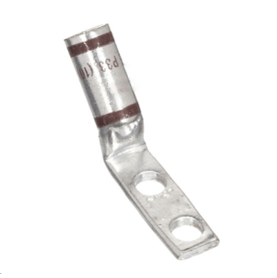 Feature : Precision-engineered 45-degree lug manufactured from high-conductivity T2 copper, featuring dual-hole mounting with 1-inch center spacing, 3/8″ stud connection, and black insulation