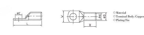 The S-T1.5-4 copper terminals are crafted from high-purity T2 electrolytic copper (99.9% conductivity) with: