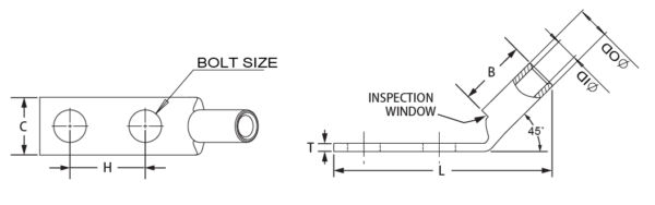 Advantage: Angled design optimizes space utilization in crowded electrical panels while T2 copper construction ensures maximum conductivity and the long barrel provides superior crimp integrity